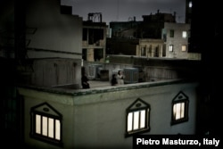An award-winning photograph by Pietro Masturzo of women shouting on a Tehran rooftop amid the election protests in 2009.