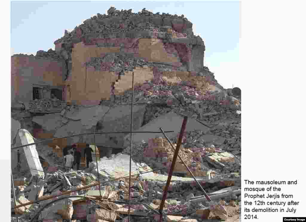 The site of the Prophet Jonah Mosque after its demolition by IS in July, 2014