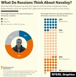 The detention sparked outrage across the country and much of the West, with tens of thousands of Russians taking to the streets in rallies on January 23 and 31. Police cracked down harshly on the demonstrations, putting many of Navalny's allies behind bars for the actions, and then detaining thousands more -- sometimes violently -- as they gathered on the streets.