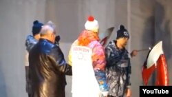 Until this awkward moment in front of a crowd at a torch ceremony in the city of Kostroma: