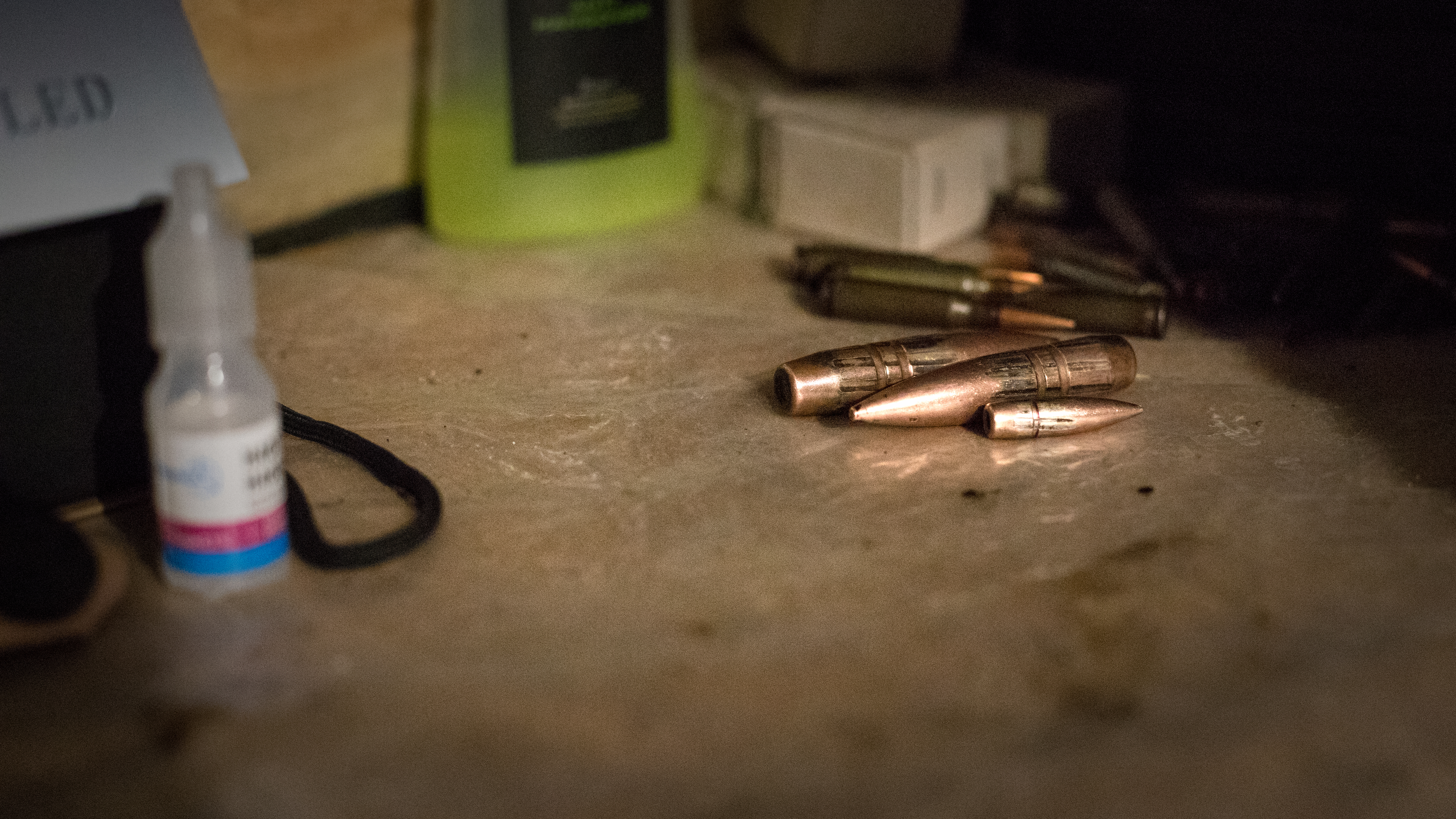 A collection of inbound bullets picked up from a Ukrainian position near Popasna in December 2017. Around the dugout where Dubchak took this photo, militants regularly fired at surrounding trees with what the soldiers described as explosive bullets. The shots were loosely aimed, and Dubchak says they were “just made to keep psychological pressure on the fighters.”