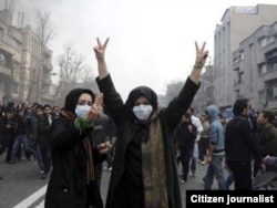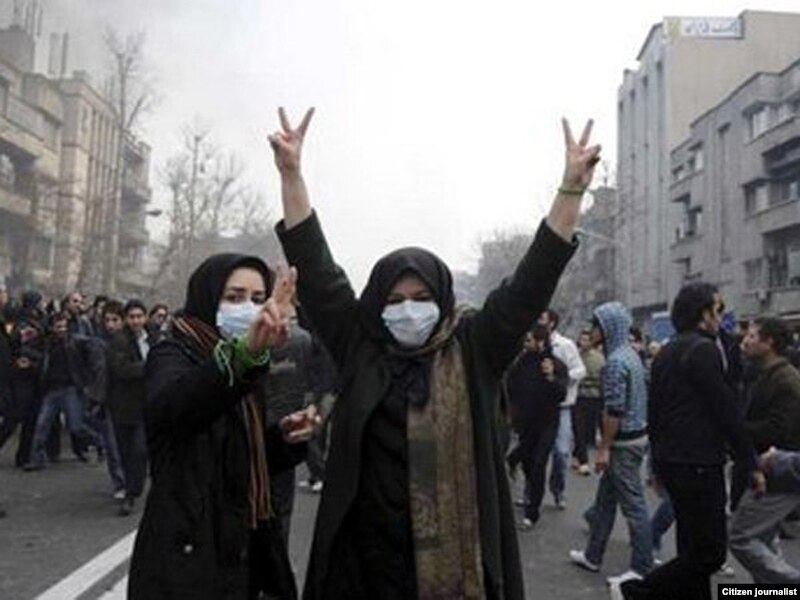 Amateur video footage from Tehran shows citizens marching and chanting, "Political prisoners must be released!" and towards the end a woman shouts, "They used tear gas." People then start to run.