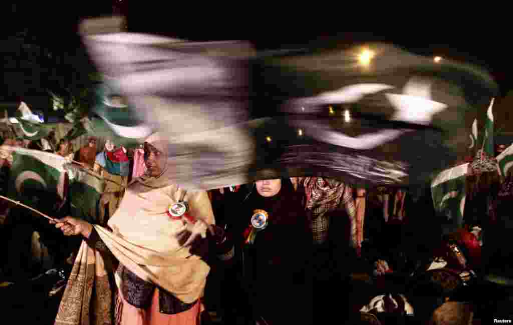 Supporters of religious leader Tahir-ul Qadri gather in Lahore on January 13 to take part in the "Caravan of Democracy March."