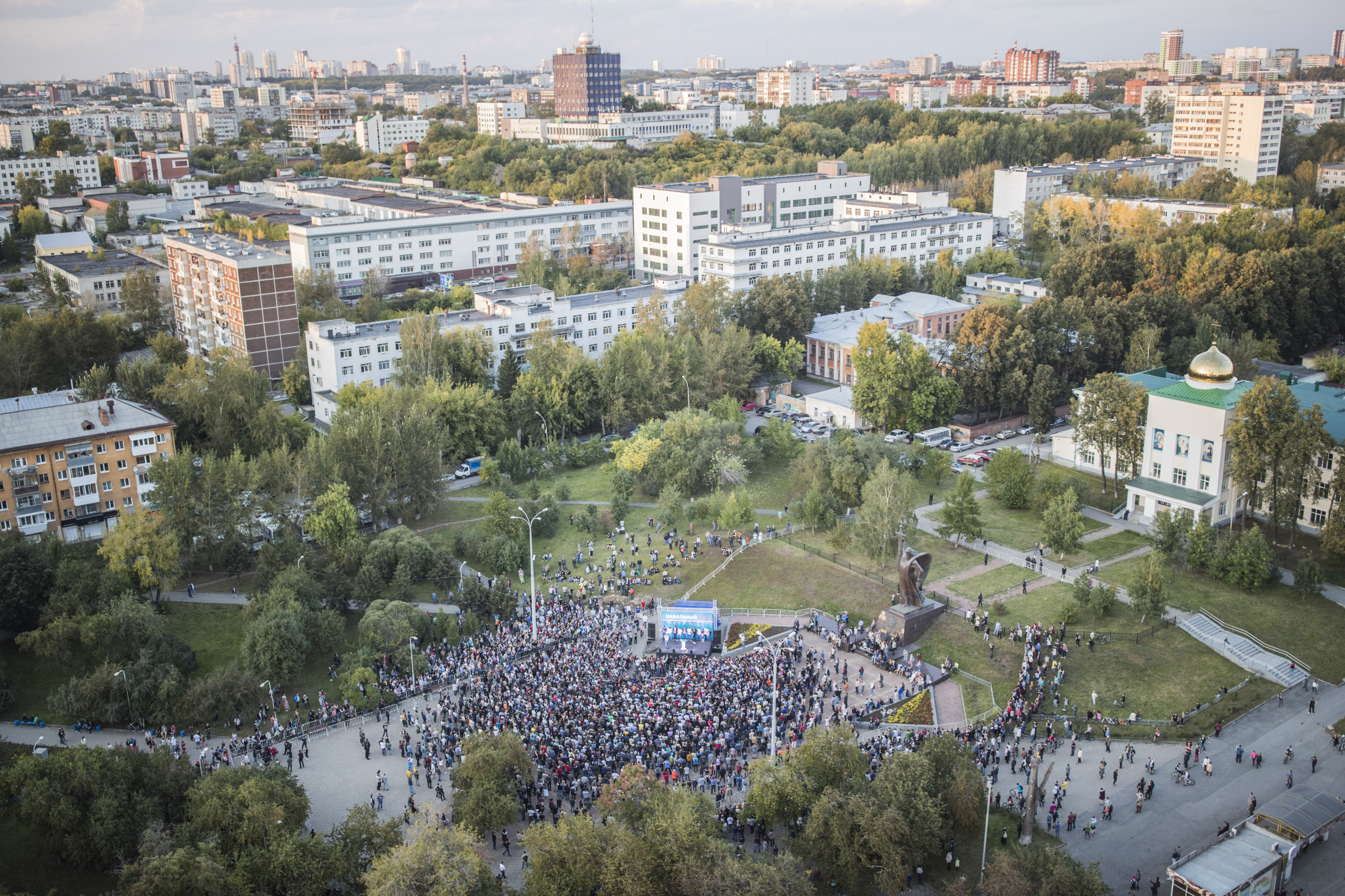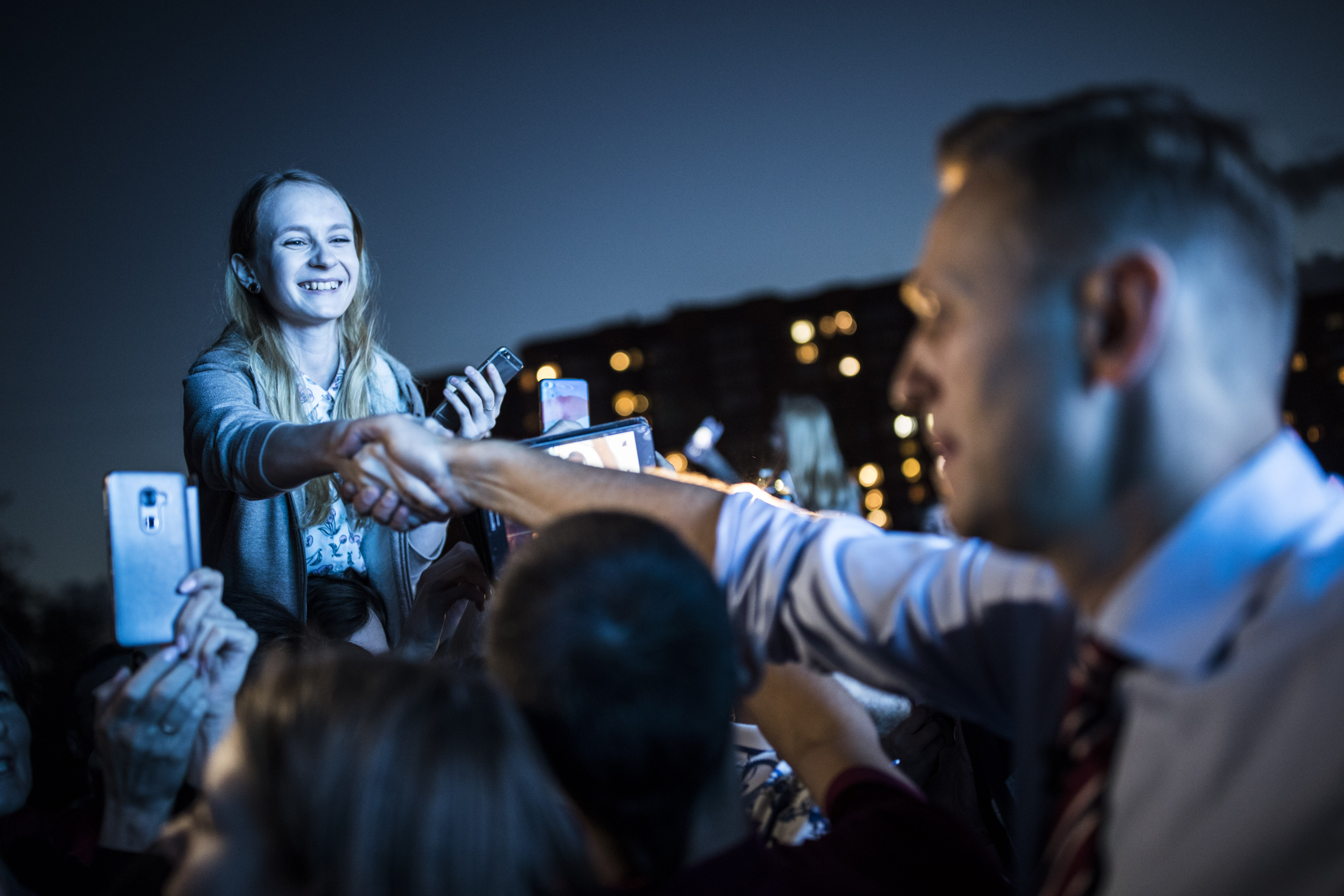 Navalny addressing a crowd in Yekaterinburg, east of the Urals, in September. Unable to gain access to Russia’s state-run TV networks, Navalny attempted to take his anti-corruption and “democratic nationalism” message directly to people across Russia.