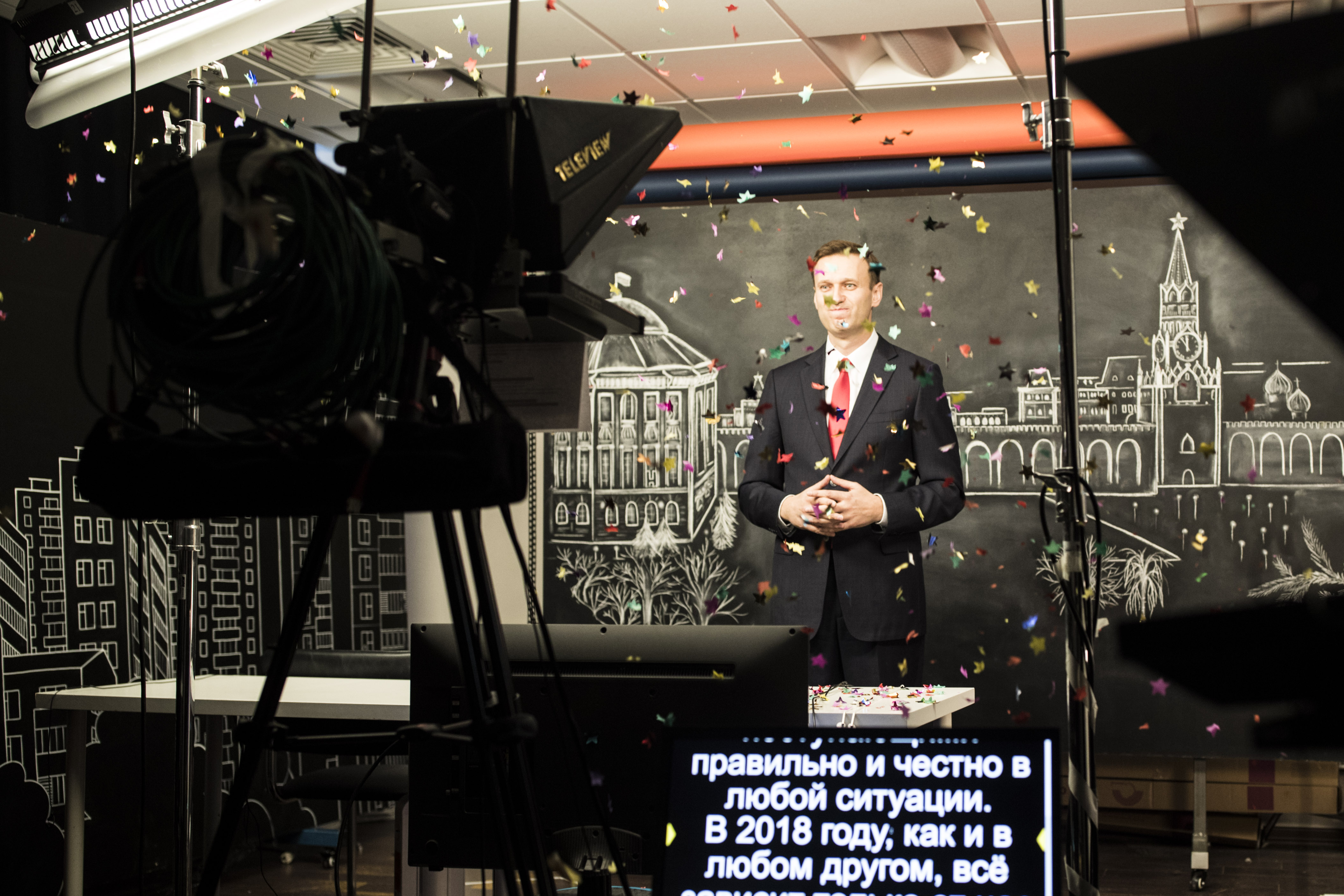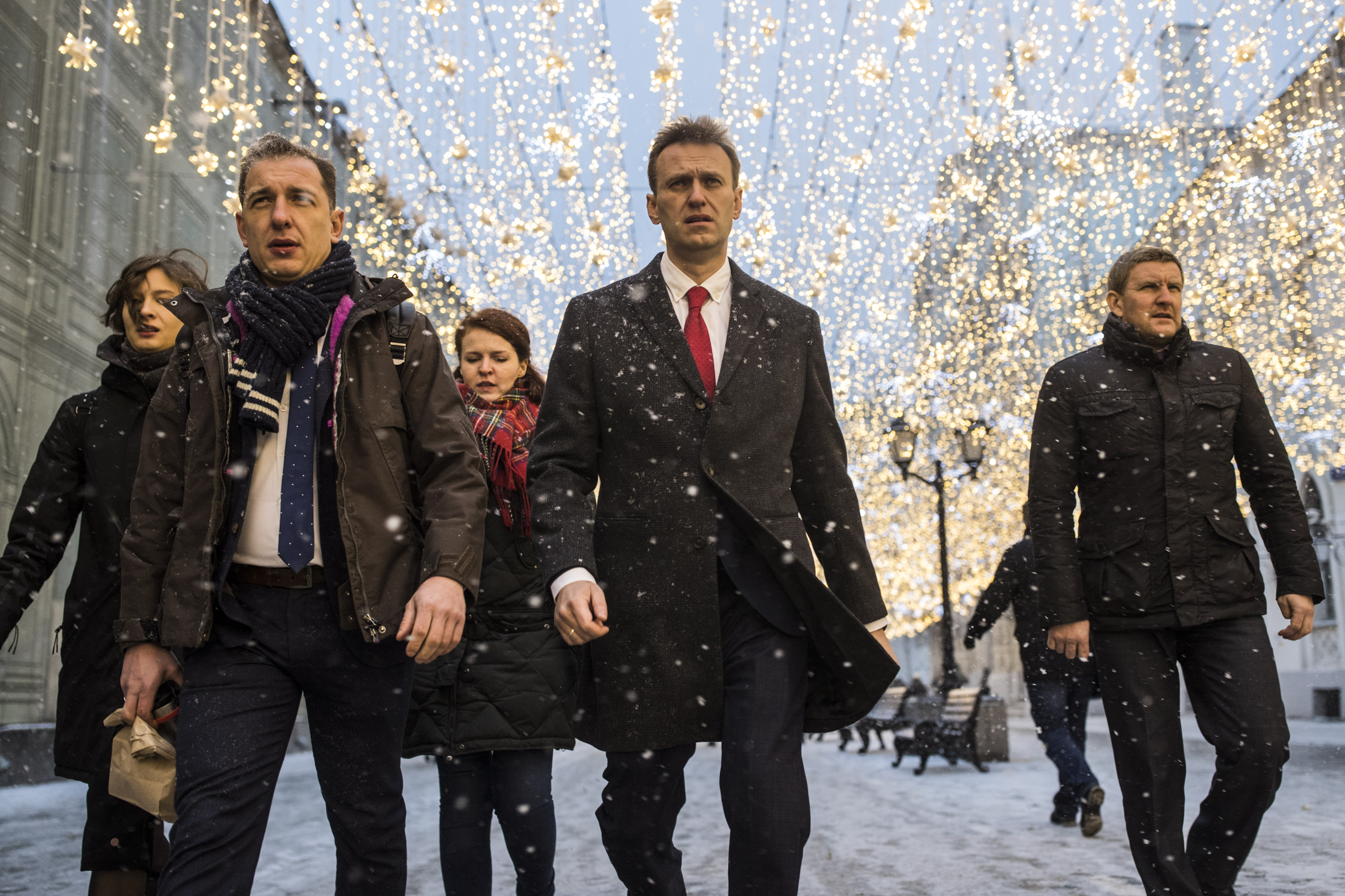The team on the way to the Central Election Commission after emerging from the Metro. The commission told Navalny he was ineligible to run for president due to a suspended sentence for embezzlement, a charge Navalny calls politically motivated. Navalny then called on his supporters to boycott the March 2018 election.