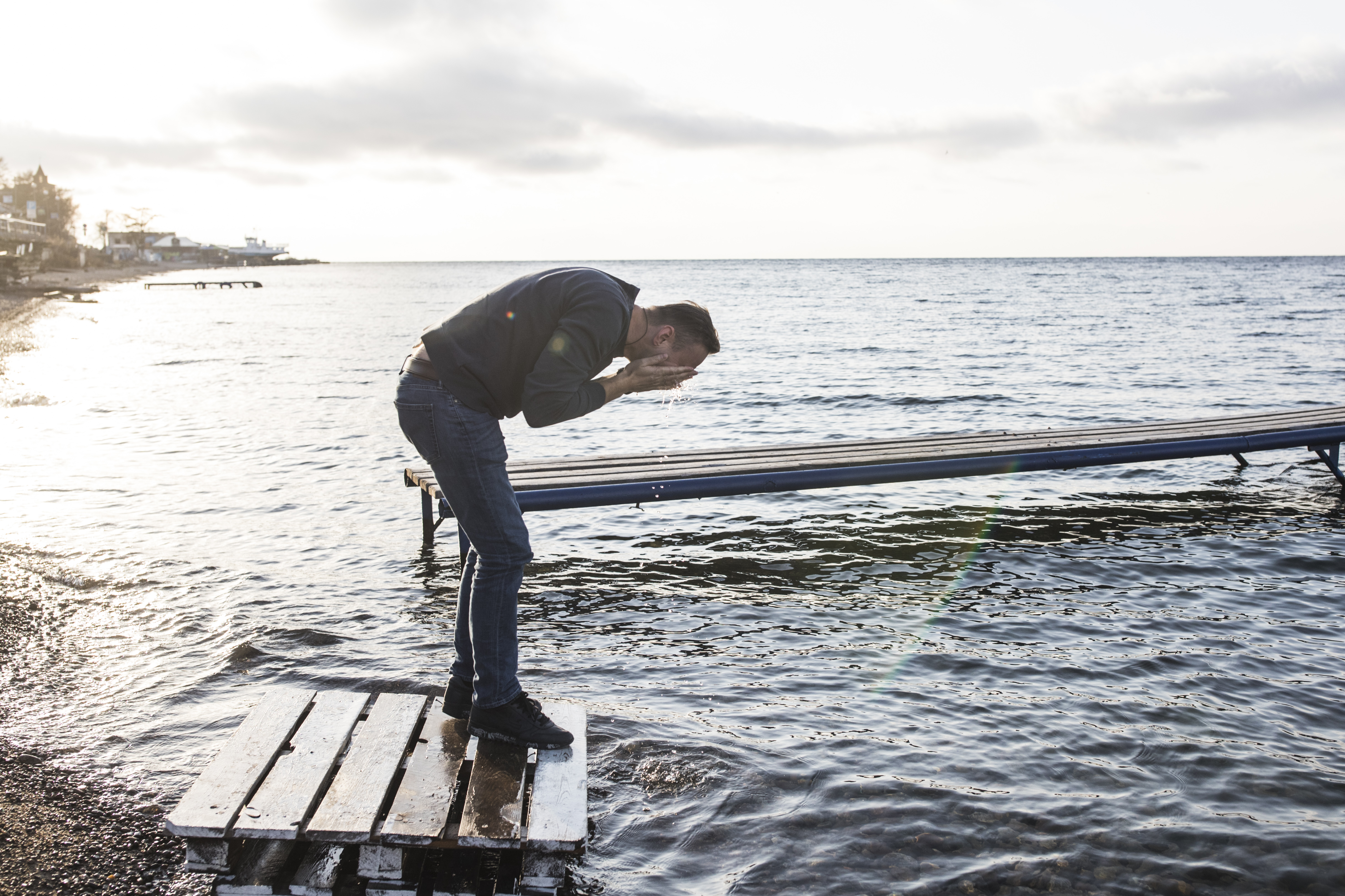 Navalny splashing his face with the autumn waters of Lake Baikal before a rally in Irkutsk.