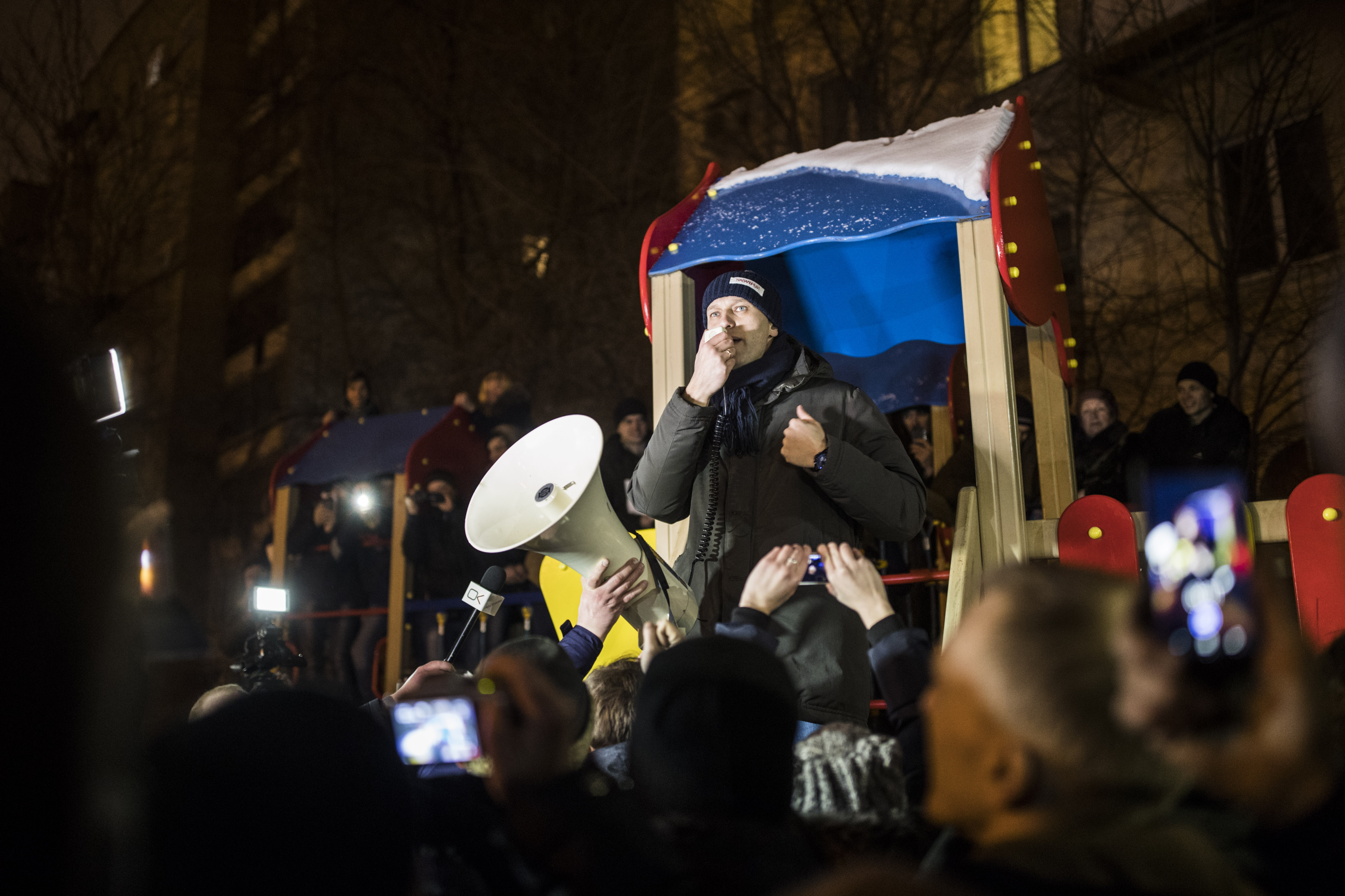 As Aleksei Navalny traveled across Russia in an extraordinary campaign despite a looming ban on his candidacy, photographer Evgeny Feldman was alongside through attacks, arrests, and impromptu street speeches.