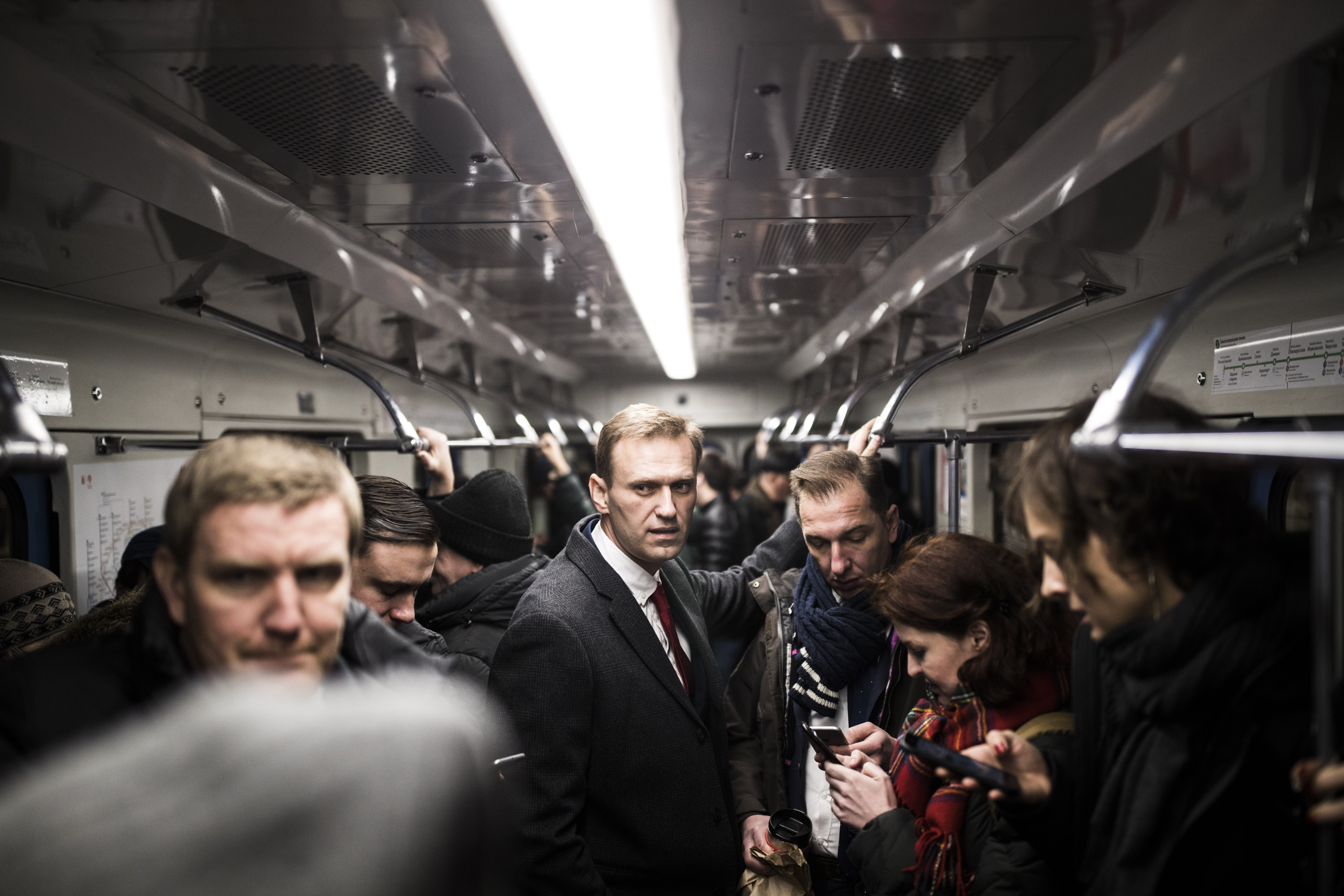 Navalny and his team taking the Moscow Metro on December 25 to hear whether his attempt to register as a presidential candidate was successful.