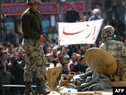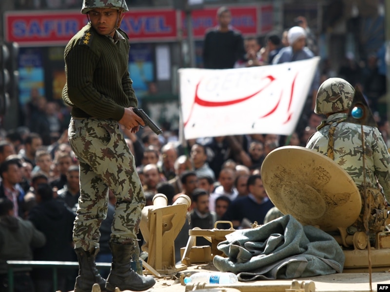 But many protesters have initially been welcoming the presence of soldiers on the streets in the place of riot police. Army troops -- at least at the rank-and-file level -- also could be seen putting banners on their armored vehicles declaring themselves as "protectors of the Egyptian nation and the Egyptian people." Many soldiers also have made no effort to remove anti-Mubarak graffiti painted on their vehicles during the weekend by demonstrators.