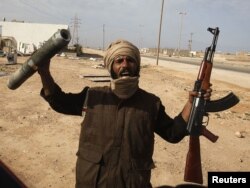 A protester in Tobruk shows a mortar shell used by troops loyal to one of Qaddafi's sons to destoy a munitions store.