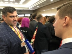 At this year's press conference, many attendees are drawing attention with national attire, both from Russia’s ethnic republics and other countries. This Bulgarian journalist brought a traditional toy and dressed in national costume.