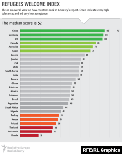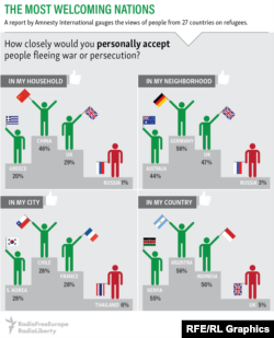 That's according to the results of a new survey by Amnesty International that sought to determine just how close ordinary people would be willing to get to the refugee crisis -- asking if they would be willing to take refugees into their country, city, neighborhood, or home.