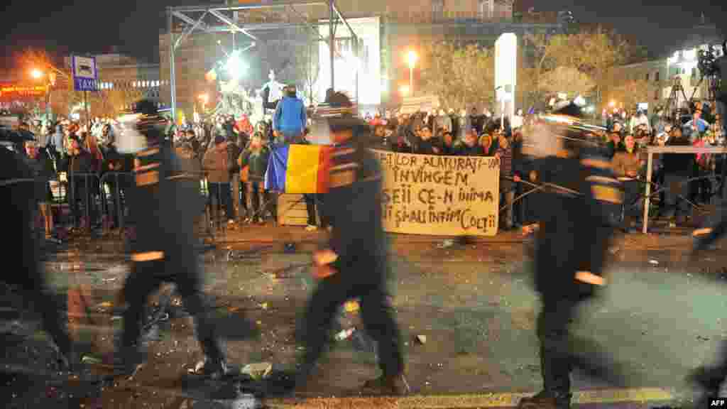 Peaceful demonstrations against a new health-care bill on January 14-15 in downtown Bucharest turned violent after dark when football hooligans hijacked the protest, pelting riot police with rocks and fire bombs.