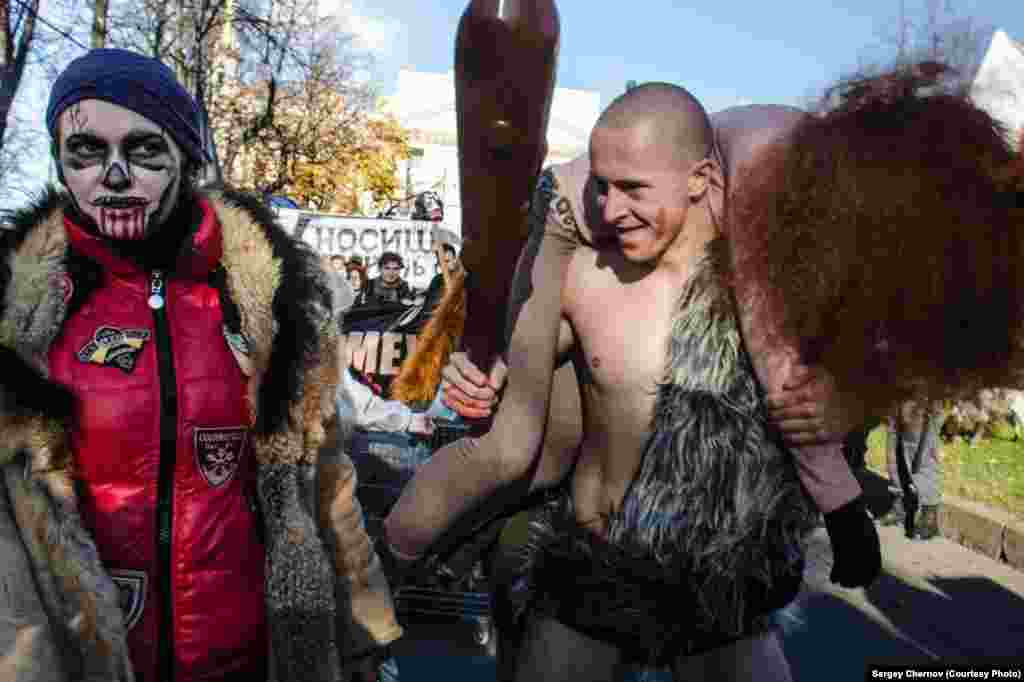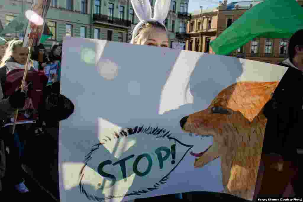 On October 20, animal-rights activists rallied in cities across Russia, with the largest being a march and performance in St. Petersburg. Participants gathered to protest against the slaughter of animals for the production of fur used in the clothing industry, according to organizers. The protests are one sign of Russia's growing animal-rights movement. (11 PHOTOS)