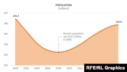 Ivanova tells RFE/RL the current trend seems likely to continue for the foreseeable future. "For the next 10 years we will most likely live in a period of depopulation -- that is, a contraction of the population driven by natural decrease," she explains. "But the overall population might actually increase if migration can compensate for the natural decrease."