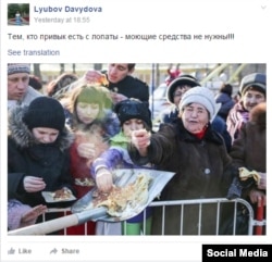 "Those who are used to eating from shovels do not need any detergents," a Facebook user wrote, pulling out a photo taken earlier this year in the southern city of Stavropol, where people were served traditional pancakes on shovel-blades during a celebration of Maslenitsa -- Russia's Mardi Gras.