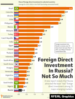 Russia's business climate faces stiff headwinds for many reasons, including the economic sanctions imposed by the United States, Japan, and European allies for Moscow's 2014 seizure of Crimea, along with alleged Russian interference in U.S. elections.