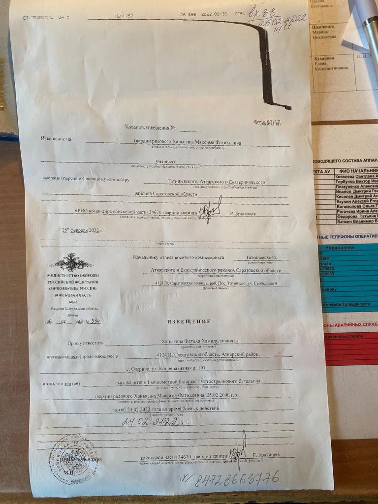 Word of Khanygin's death came to his family in Ozyornoye on February 25, when the head of the regional military office called his mother, Lyudmila Khanygina, with the news.