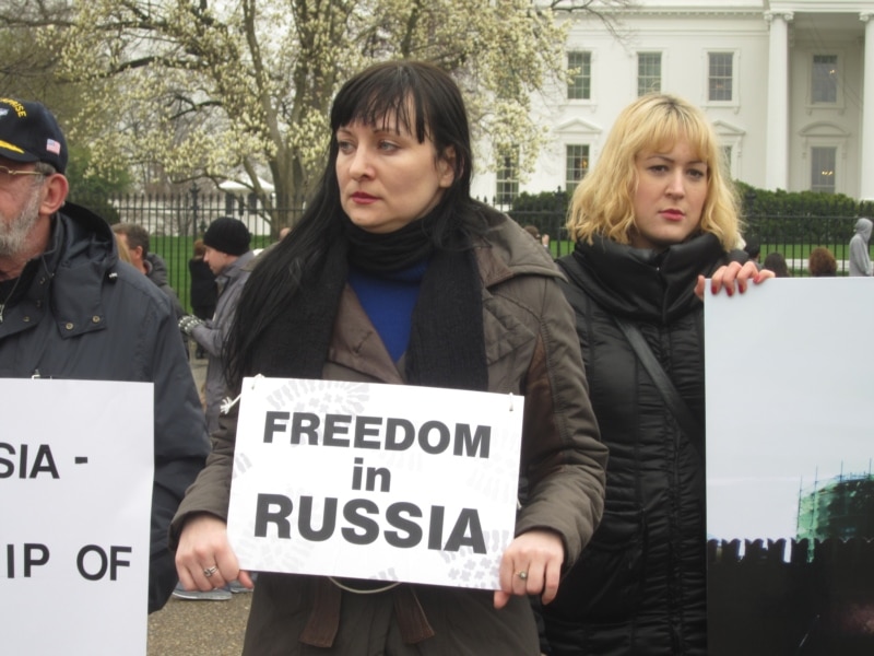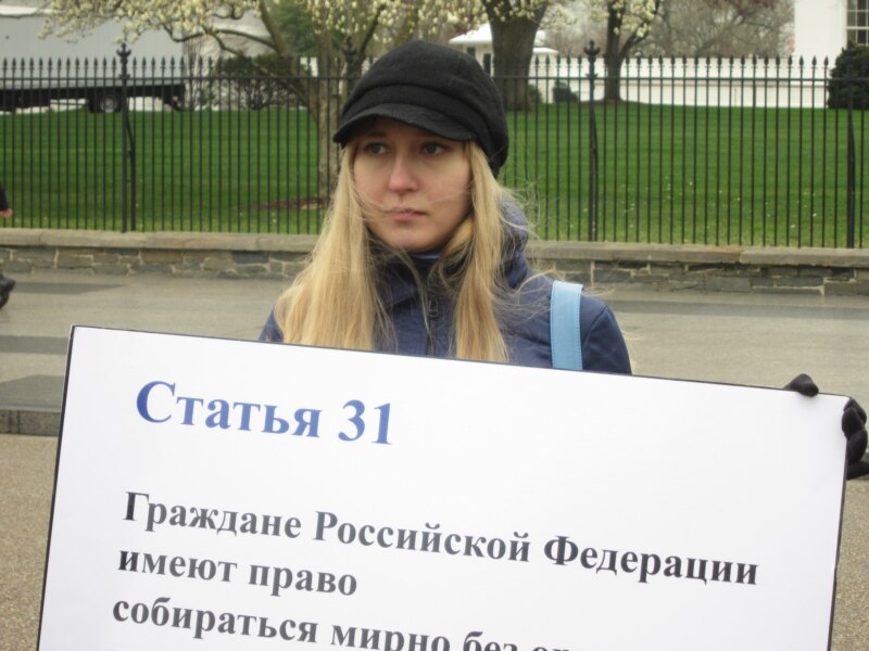 Pelevine said she received messages of encouragement for the Washington protest from the leaders of "Strategy 31" in Russia, and hopes to return to the U.S. capital in the future, with even more supporters.
