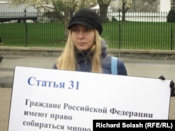 But on March 31, as police arrested some 150 people rallying in Moscow and St. Petersburg, a transplanted "Strategy 31" protest was being held in front of the White House in Washington, thousands of kilometers from the Kremlin.