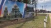 A World War II mosaic depicts a banner of former Soviet leader Josef Stalin, who is responsible for the deaths of millions of citizens as well as the closure or demolition of hundreds of churches across the country.