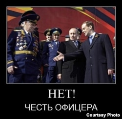 Putin and Russian President Dmitry Medvedev as captains on a sinking ship. The closing titles read "Don’t let yourself be betrayed. Say 'No' to the Popular Front," a reference to the broad coalition of pro-Kremlin groupings.