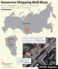 The statement came after Emergency Situations Minister Vladimir Puchkov said that 64 people were killed by the fire in Kemerovo, about 3,000 kilometers east of Moscow. The official toll late on March 25 had been below 10, but it climbed as firefighters battled the blaze and worked their way through the shopping center.