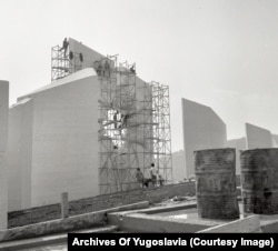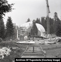 The construction of the Kadinjaca memorial complex on a hilltop near Uzice, in today's Serbia, in 1979.