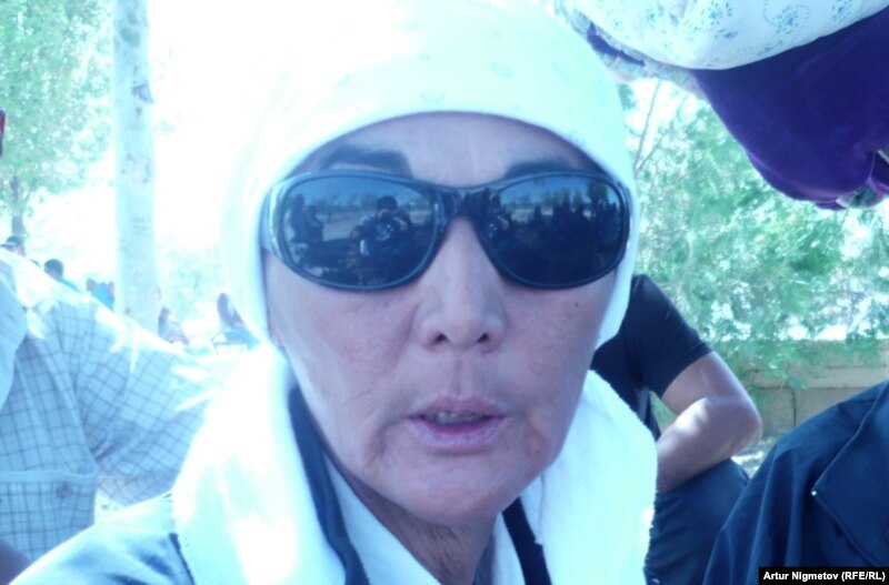 Suddenly, an elderly woman broke free from the crowd and ran toward the mayor, asking him for help finding work for her children. Kosherbaev told the woman to speak to his deputy. But by then, other people in the crowd had approached the elderly woman, and began shouting in anger.