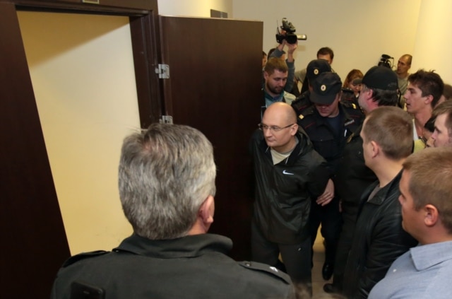 Aleksandr Gorbunov (center) being escorted by police at St. Petersburg’s Kalininsky District Court on September 9, 2015. (TASS)
