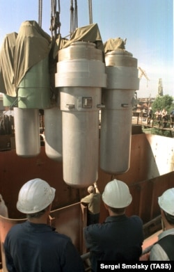 A nuclear reactor weighing nearly 200 tons being installed in a Soviet-era icebreaker. A full day of grinding through thick ice uses up just 300 grams of uranium in a nuclear icebreaker, compared to around 100 tons of fuel for an equivalent diesel-powered vessel.