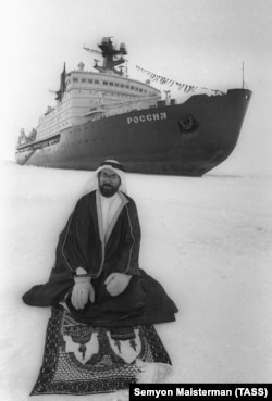 A Saudi man prays at the North Pole in 1990. Since the collapse of the Soviet Union in 1991, some of Russia’s nuclear-powered fleet have run a profitable side job ferrying wealthy tourists to the top of the Earth.