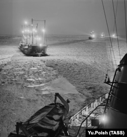 Soviet icebreakers were used to clear a path for more fragile merchant vessels, like this convoy in the Baltic Sea. In 1940, the Soviets also gave an ice-breaking escort through the northeast passage for the Nazi battleship Komet, which traveled from Europe all the way into the Pacific, where the vessel wreaked havoc on Allied shipping.
