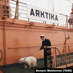 A polar bear cub aboard the Arktika icebreaker. In 1977, the nuclear-powered ship became the first surface vessel to reach the North Pole.