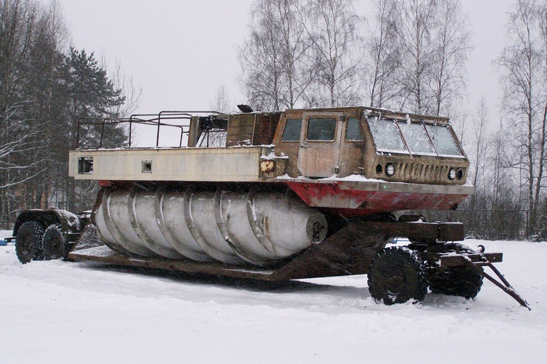 But if there’s one example of a truly Russia-proof vehicle, it's the amphibious ZiL 4904. This swamp beast was propelled forward by two aluminum pontoons wrapped in a screw-like thread that churned through squishy terrain the same way a screw twists into wood. The ZiL could plow through snow at running speed, could outpace any human swimmer on the open water, or could crunch through swamps when the need arose.