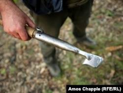 Penev uses a specially designed tool used for digging up truffles and cutting tree roots while doing minimal damage to the landscape.
