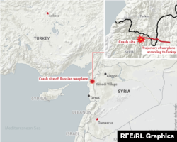 Russian, Turkish, and Western military officials sharply disagreed, however, whether the Russian jet had in fact violated Turkish airspace. The Russian Defense Ministry maintained that "the plane was over Syrian territory throughout the flight" and said it crashed four kilometers from the Turkish border.