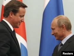 Russian Prime Minister Vladimir Putin (right) meets with his British counterpart, David Cameron, in Moscow on September 12. It marked the first time any British politician has held official talks with Putin for over four years.
