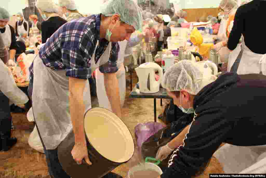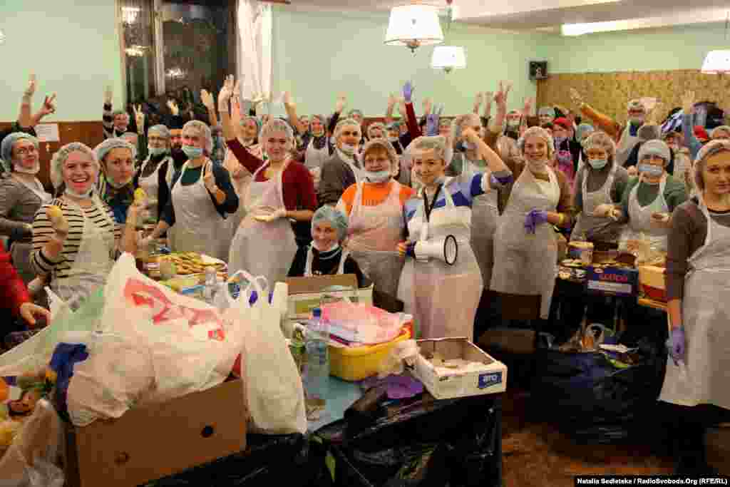 As mass antigovernment protests continue in Kyiv, volunteers have taken on the job of feeding the activists in the streets. The main kitchen supplying the protests, located at the dining hall of a trade union building, is in operation 24 hours a day, making meals and hot drinks with supplies donated by supporters.