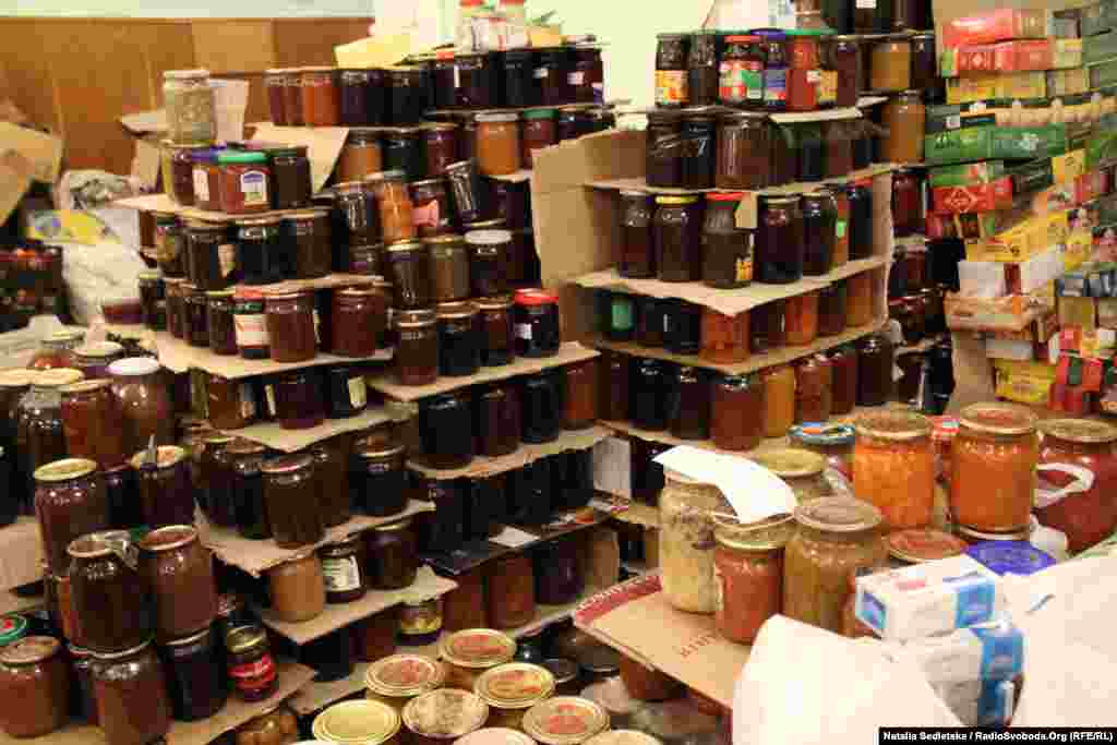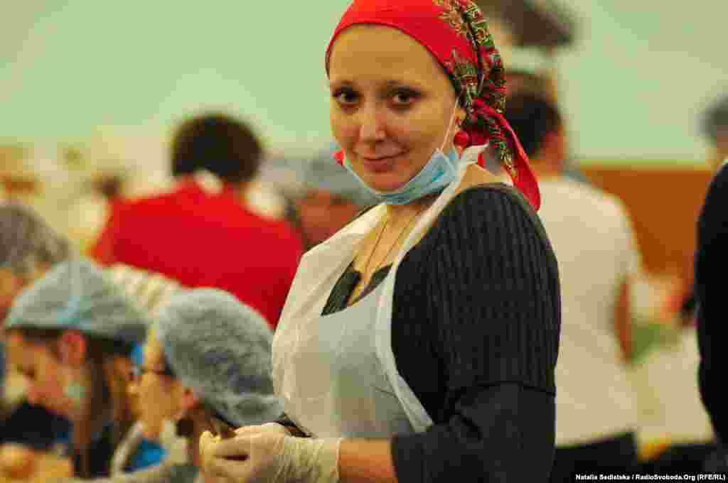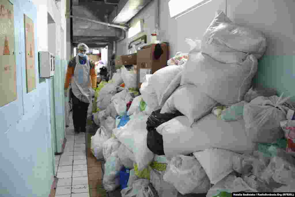 Lyubov Stepanivna, a retired sanitation inspector, checks all the food supplies to make sure no products are expired and that all the preparations meet hygienic standards.