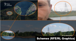 RFE/RL geolocated the ferry crossing shown in Tepinskiy's video to the right bank of the Dnieper, near Kozatske. The ferry is heading to the mouth of the canal that connects the village with Nova Kakhovka, located on the left bank.