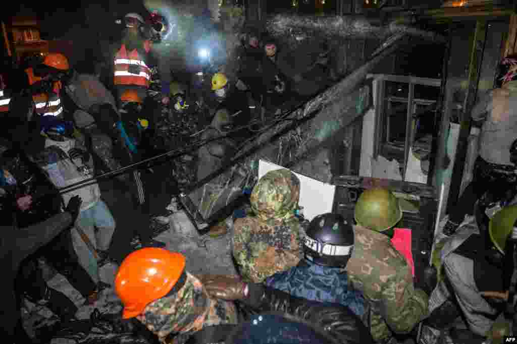 Ukrainian protesters took over a building in Kyiv early on January 26 after opposition leaders spoke to the crowds in Independence Square, vowing to continue their struggle. The protesters had allowed several hundred police to leave the building, known as Ukrainian House, before moving in and occupying it.