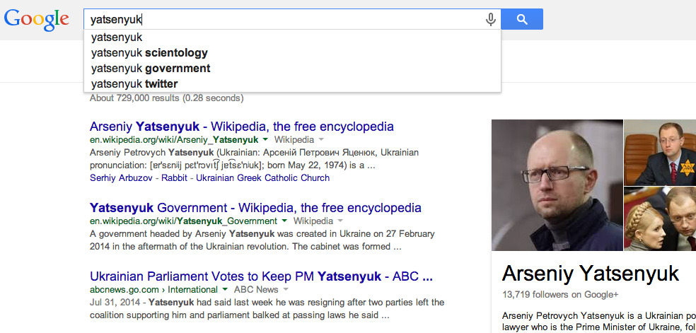 Except he's not. Despite popular online rumors that he is either a Scientologist or Jewish, Yatsenyuk identifies himself as a Ukrainian Greek Catholic -- a church that makes up 14 percent of Ukraine's population.