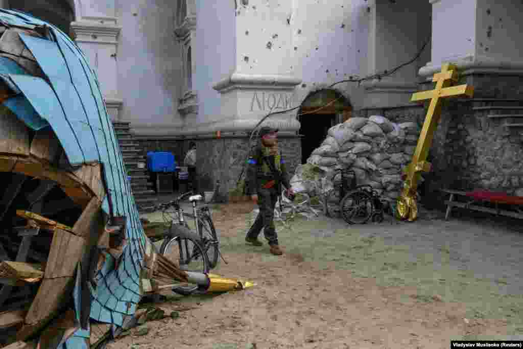 Russian air strikes targeting the nearby bridge and Ukrainian troop positions repeatedly hit the monastery, where hundreds of internally displaced people had sought refuge.