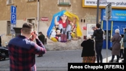 Dmitry Proskin, who lives in the Czech capital with his family, told RFE/RL that photos of the mural have been shared worldwide since he completed the work on March 18. But the Kazakh-born artist says “the main thing is that it is being seen by Ukrainian people.”