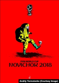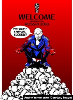 Inspired by Russia's forcible annexation of Crimea in 2014 and its support for armed insurgent forces in eastern Ukraine, Yermolenko has created a-growing collection of provocative, alternative World Cup posters that has taken the Ukrainian and Russian Internet by storm.