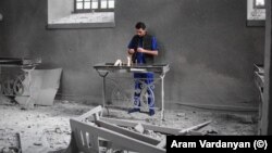 As day broke we went looking for the fresh damage done during the night. There’s a wide array of weapons being used -- artillery, drone missiles, and huge, truck-mounted Smerch missiles. We think a type of Israeli rocket called Lora is being used for the first time in combat. The locals told us that, in the old days, the Azerbaijanis would use Grad rockets, which didn’t do much damage outside of the immediate place they hit. Now they are using much larger rockets and the shrapnel tears through everything around.