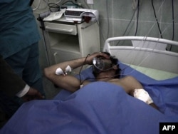 A Libyan who was wounded during fighting in the town of Brega lies in a hospital bed in Ajdabiya on February 2.