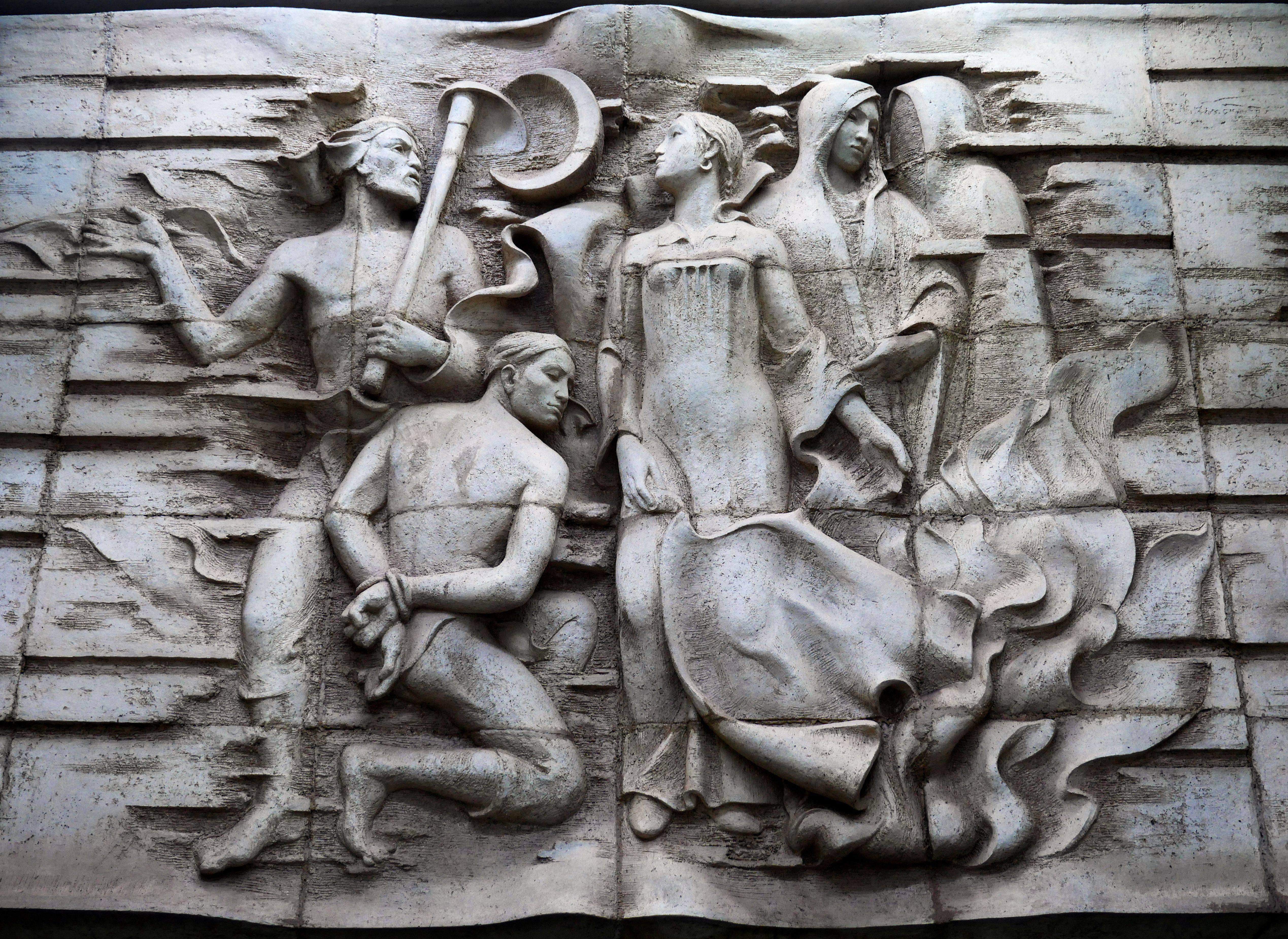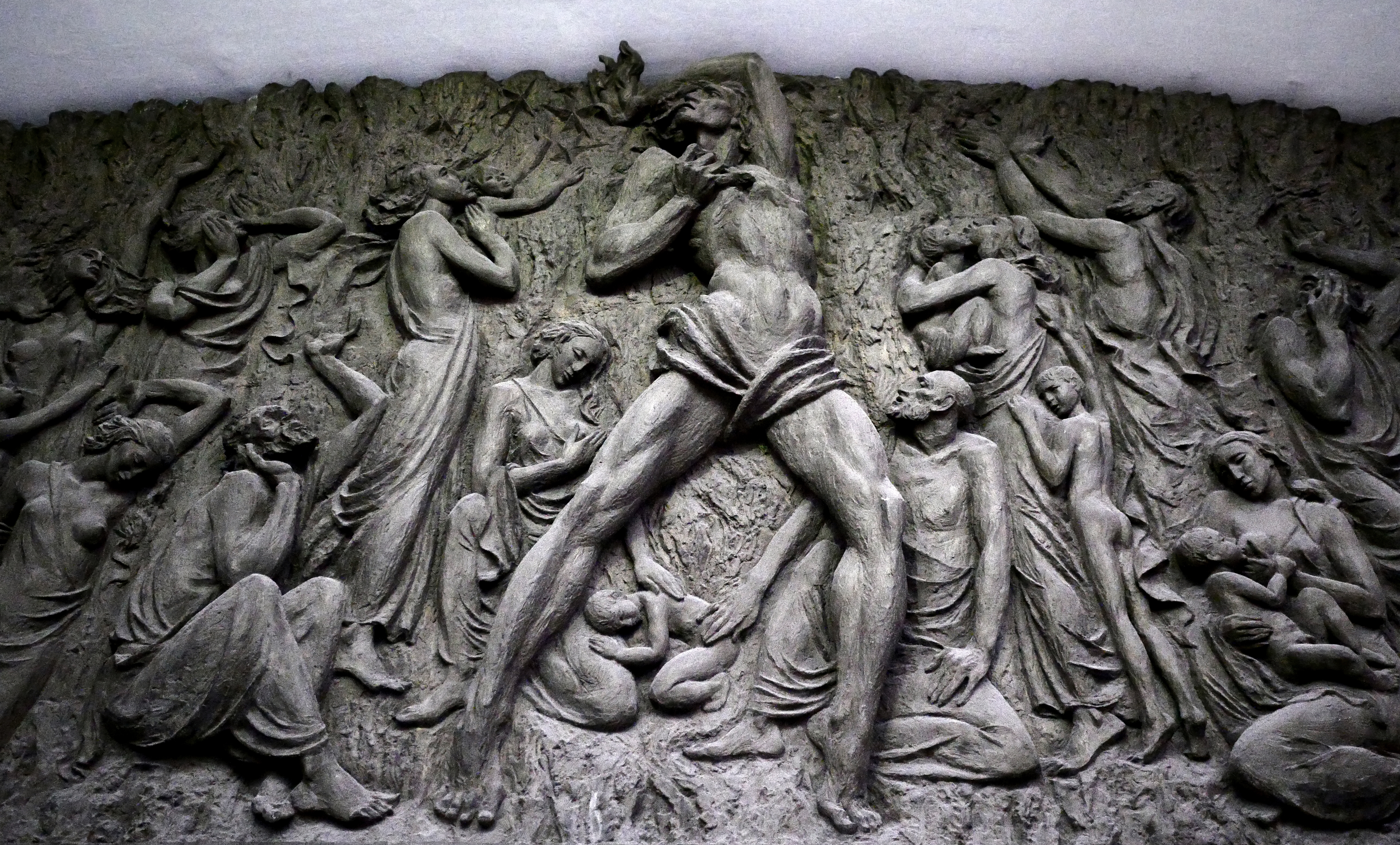 Writhing figures in a relief at the exit to Buyuk Ipak Yuli (Great Silk Road) station.