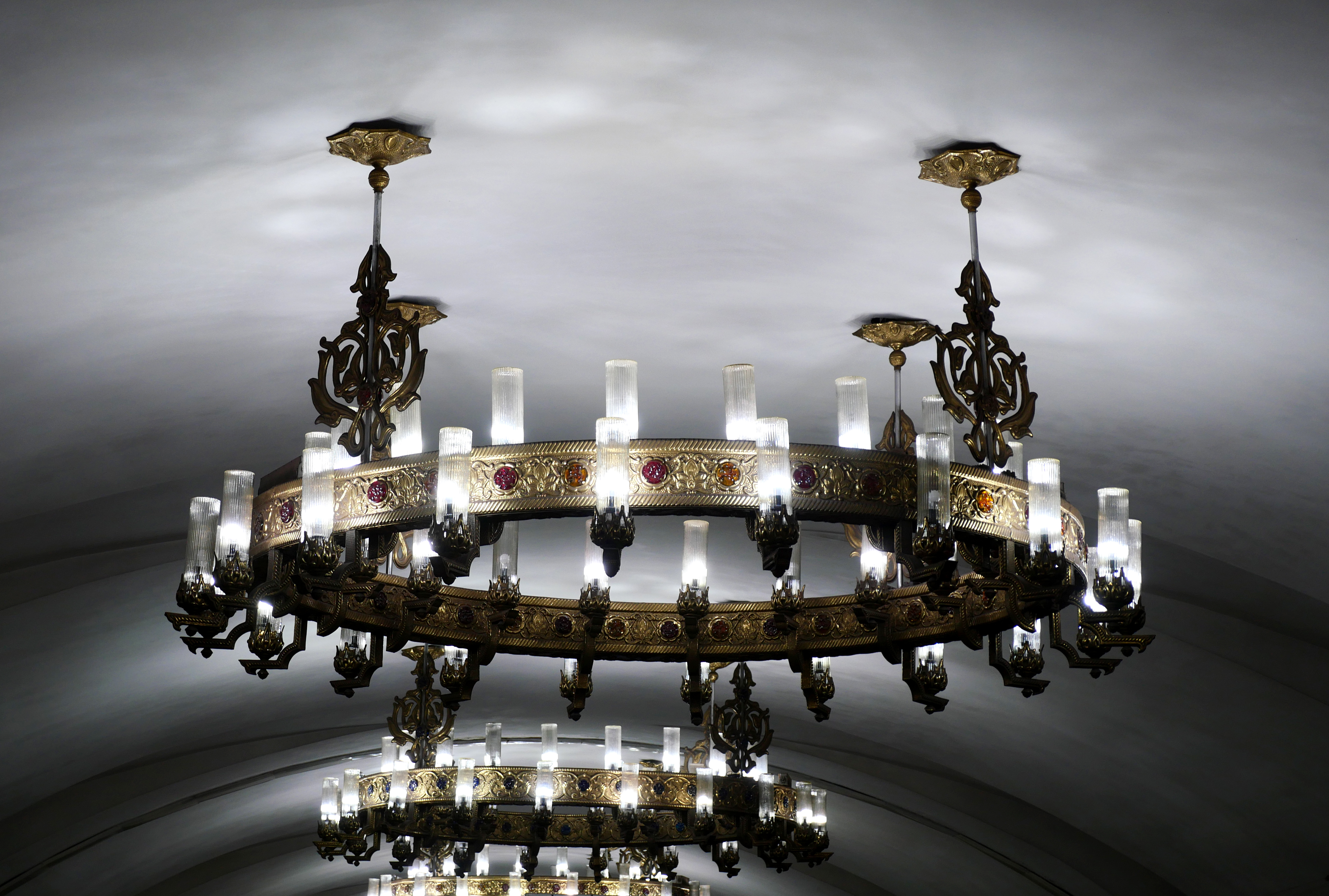 Chandeliers in Chilonzor station, named after a region of Tashkent. Artists were brought in from across the Soviet Union to work on the Tashkent Metro. These 5-meter chandeliers were designed by Latvian artist Haim Rykhsin.